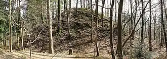 Vermutlich bestand die Turmhügelburg (Motte) nur aus einem Turm auf einem Burgareal von etwa 10 mal 10 Metern. Von der ehemaligen Burganlage ist nur der Turmhügel erhalten. 1975 war noch ein Graben zu sehen, gefundene Keramikscherben stammten aus dem Zeitraum zwischen dem 13. und dem 15. Jahrhundert.[1]