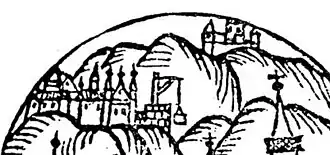 Die obere Burg (rechts) nach Sebastian Münster von 1527