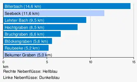 | Linke Nebenflüsse | Schanze, Billerbach, Reubeeke, Lehrter Bach, Blöckengraben, Bruchgraben, Röddenser Bach, Hainholzbach, Hechtgraben | |