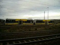 Im Einsatz waren u. a. seit 1999 19 zweiachsige Leicht-Verbrennungstriebwagen vom Typ DWA LVT/S (Baureihe 672)[14], deren Anzahl wegen Streckenabbestellungen im Laufe der Jahre abnahm. Sie waren im Bw Leipzig Hbf Süd beheimatet. Seit Mitte 2017 fand die Instandhaltung bei der Mitteldeutschen Eisenbahn am Standort Buna Werke in Schkopau statt.