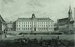 Das dreigeschossige Gebäude aus Berner Sandstein mit einem grossen Innenhof gilt als der schönste Barockbau Berns. Nach einem Projekt von Joseph Abeille wurde es ab 1732 unter der Bauleitung von Niklaus Schiltknecht und nach dessen Tod im Januar 1735 unter derjenigen von Samuel Lutz errichtet und 1742 fertiggestellt. Die über dem Hauptportal angebrachte lateinische Inschrift Christo in pauperibus (etwa: «Dem Herrn dienen, indem man den Armen dient») soll auf Albrecht von Haller zurückgehen. Ihre biblische Grundlage bildet eine Aussage Jesu, die im Matthäusevangelium überliefert ist: «Wahrlich ich sage euch: Was ihr getan habt einem von diesen meinen geringsten Brüdern, das habt ihr mir getan» (Matthäus 25, 34–40).