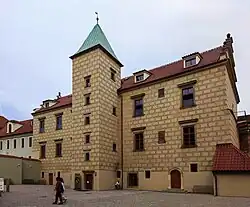- ↑ a b c František Kašička: Staré purkrabství Pražského hradu — výsledky poslední stavebně historické analýzy. In: Archaeologica Historica. Band 14, 1989, S. 203–212 (tschechisch, muni.cz [PDF] Deutsche Zusammenfassung Der Alte Burggrafenpalast in der Prager Burg — Ergebnisse der letzten bauhistorischen Analyse auf S. 211–212. Digitale Bibliothek der Philosophischen Fakultät der Masaryk-Universität).
