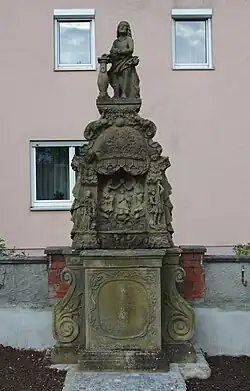 Nach den Zerstörungen im Jahr 1796 haben sich im Dorf und auf der Gemarkung lediglich mehrere Bildstöcke und Kleindenkmäler aus vergangenen Jahrhunderten erhalten. Besonders prächtig ist die Figur des kreuztragenden Christus mit dem Henkersknecht aus dem Jahr 1720. Ein Prozessionsaltar von 1761 zeigt als Bekrönungsfigur den gegeißelten Christus.