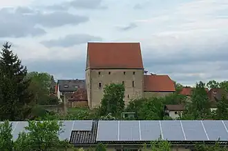 Zentral steht das ehemalige Schloss der Herren von Grumbach. Es wurde zeitweise auch als Pfarrhof und Zehntscheuer genutzt. Ein dreigeschossiger Massivbau des 14. und 15. Jahrhunderts bildet den Mittelpunkt der Anlage. Im 19. Jahrhundert entstand ein Anbau. Mehrere Wirtschaftsgebäude gruppieren sich um das Wohngebäude, außerdem hat sich der polygonale Bering erhalten. Eine Brücke leitet zum Burgtor des 16. Jahrhunderts über.