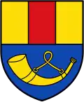 Blasonierung: „Geteilt von Gold (Gelb) und Blau; oben ein roter Pfahl, unten ein goldenes (gelbes) Hifthorn.“[2] |