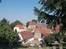 - Kirche, barock auf Grundmauern aus dem späten Mittelalter, 1935 auf Initiative des Freiherrn Tilo von Wilmowsky grundlegend saniert (Gedenktafel an der Kirche)