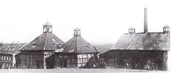 Mit den Vorbereitungen zur Installation einer öffentlichen Gasbeleuchtung in Dresden durch Rudolf Sigismund Blochmann Ende der 1820er-Jahre suchte auch Carl Friedrich August Dathe von Burgk nach einer Verwertungsmöglichkeit der Koksofengase seiner Steinkohlenwerke. Er beauftragte den Ingenieur Friedrich Kinne aus Halle mit der Planung einer Erzeugungsanlage für Leuchtgas.[20] Kinne legte erste Entwürfe im April 1827 vor. Daraufhin produzierte die Gröditzer Eisenhütte bis Dezember 1827 unter anderem einen gegossenen Gasometer, eine Retortenanlage und 496 Gasrohre von 71 cm Länge. Dathe von Burgk ließ daraufhin 1828 die Gaserzeugungsanlage am Wilhelminenschacht errichten.[21]