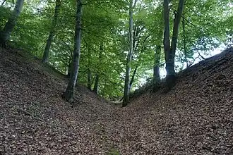![]() Mächtiger Halsgraben an der Südseite | ||