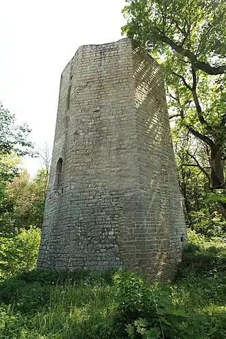 ![]() Burgruine Ebermannsdorf – Ansicht des achteckigen Wohnturmes | ||