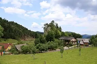 ![]() Felssporn der Burgruine Frohnberg in Miesenbach | ||