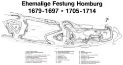 1679 wurde die Burg vom Französischen König Ludwig XIV. erobert.[2] Dieser ließ die Festung in der Reunionszeit durch seinen Festungsbaumeister Sébastien Le Prestre de Vauban erweitern und die Stadt befestigen. Die Grundstruktur der Homburger Altstadt stammt aus dieser Zeit. Die Festungsanlagen wurden erstmals 1697 und endgültig 1714 geschleift. 1755 fiel die Ruine an das Herzogtum Pfalz-Zweibrücken und diente danach als Steinbruch für den Bau von Schloss Karlsberg. Ab 1981 wurde die Anlage freigelegt und teilweise restauriert.