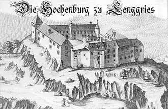 ![]() Kupferstich der Hohenburg von Michael Wening (1701) | ||