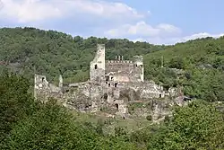 ![]() Die Burgruine Senftenberg (rechts) | ||