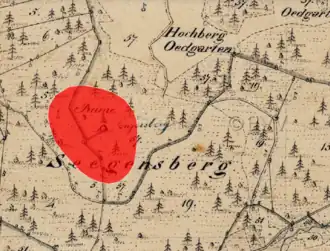 Lageplan der Burgruine Sengersberg auf dem Urkataster von Bayern | ||