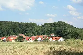 Ansicht von Dorf und Burgruine Stierberg von Nordwesten | ||