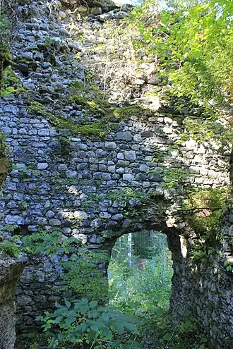 Die Burganlage besteht aus einem ehemaligen, rechteckigen, viergeschoßigen Palas und einem an dessen Südwestecke angebauten, quadratischen Bergfried. Die Mauern sind zum Teil bis zu zehn Meter Höhe erhalten.