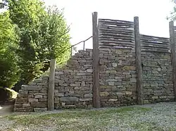 ![]() Luftbild von Burgstall mit markierter historischer Befestigungsanlage der keltischen Siedlung Oppidum Burgstall