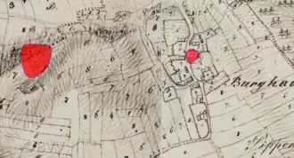 Lageplan von Burgstall Burghausen auf dem Urkataster von Bayern | ||