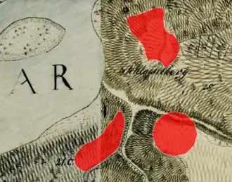 Lageplan des Burgstalls Enzelberg (rechts untere Mitte) auf dem Urkataster von Bayern | ||