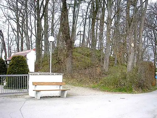 ![]() Burgstall Eurasburg – Ansicht des Turmhügels von Norden | ||