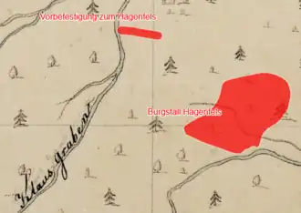 Lageplan des Burgstalls Hagenfels auf dem Urkataster von Bayern | ||