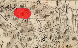 Lageplan des Burgstalls Hirnsberg auf dem Urkataster von Bayern | ||