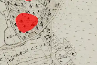 Lageplan von Burgstall Lageltshausen auf dem Urkataster von Bayern | ||