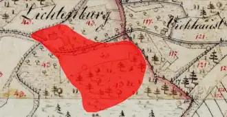 Lageplan des Burgstalls Lichtenburgauf dem Urkataster von Bayern