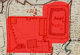Lageplan des Burgstalls Pfarrhof auf dem Urkataster von Bayern | ||