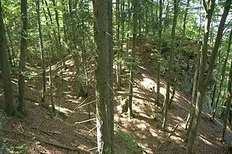 Wenige Meter vor dem Hauptgraben befindet sich ein vorgelagerter, 60 Meter langer Abschnittsgraben mit einem Außenwall (Bild 2). Der leicht gebogene Graben beginnt an der westlich des Burgstalles liegenden Hangkante und verläuft in östlicher Richtung. Er endet an einem trockenen kleinen Quellbecken, vermutlich diente dieser Graben zur Sicherung dieser Wasserstelle.