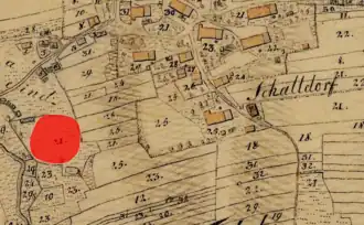 ![]() Lageplan von Burgstall Schalldorf auf dem Urkataster von Bayern | ||