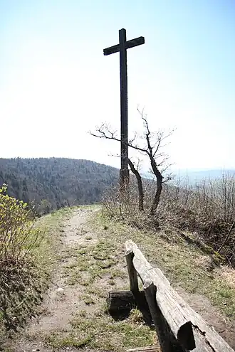 Der nach dem Kreuz auf der Spornspitze genannte Berg hieß ursprünglich Schlüsselstein. Im Jahr 1487 schenkte Bischof Heinrich Groß von Trockau den Ebermannstädtern Stiftshölzer um den „Slusselstein“. Auch im Kataster ist der Berg noch mit Schlüsselstein bezeichnet.