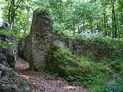 ![]() Bild 1: Der letzte Mauerrest der Burg in einer Felsspalte | ||