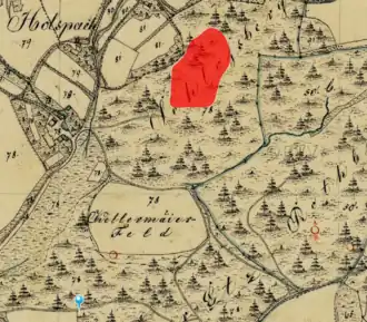 ![]() Lageplan von Burgstall Schlossberg (Unterholsbach) auf dem Urkataster von Bayern | ||