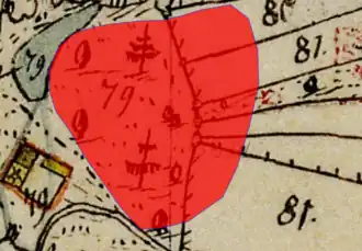 Lageplan des Burgstalls Schlossberg (Windorf) auf dem Urkataster von Bayern | ||