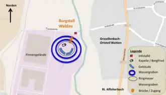 - ↑ Burgstall Waldau in der wissenschaftlichen Datenbank „EBIDAT“ des Europäischen Burgeninstituts