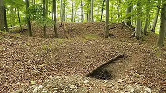 ![]() Burgstelle Bol: Burggraben und Burghügel (der Fuchsbau davor ist nicht Teil der Burganlage) | |
