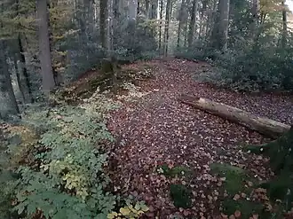 ![]() Halsgraben der Burgstelle im Oktober 2020 | ||