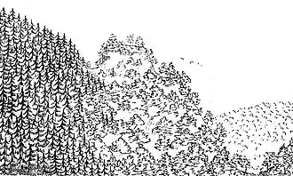 ![]() Anonyme Zeichnung der Burgstelle aus dem Jahre 1882 | ||