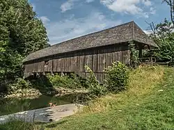 Es besteht eine Sage von einer Burg Spisegg, welche in der Nähe der Holzbrücke gestanden hatte.[7] Gleich daneben wohnte in einer Höhle ein Drache (Lindwurm), welcher die Bewohner der Burg terrorisierte. Ein tapferer Ritter entschied sich eines Tages des Drachens zu entledigen und tötete diesen nach einem langen Kampf mit einem Speer. Angeblich soll die Burg Spisegg später in den Fluss Sitter gerutscht sein.