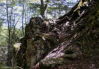 Burg Wallenburg – Blick auf den inneren Grabenrand der Kernburg | |