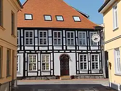 - Nr. 17: 2-gesch. Wohnhaus (D) mit Fachwerk und Walmdach, saniert