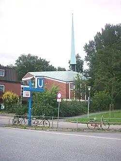 In der Hausnummer 10 steht auf Hammer Seite direkt nördlich des U-Bahnhofs mit der Kirche zur Heiligen Dreieinigkeit die Gottesdienststätte einer der beiden Hamburger Gemeinden der Selbständigen Evangelisch-Lutherischen Kirche. Sie gehört zu deren Kirchenbezirk Niedersachsen-Ost. Der heutige Kirchenbau wurde 1958 nach Plänen von Gerhard Langmaack errichtet. Die Wandmalereien im Innern schuf Helmuth Uhrig. Der ursprüngliche Kirchenbau von 1896, der im Zweiten Weltkrieg zerstört wurde, befand sich auf einer Verkehrsinsel an der Straßenecke zur Claus-Groth-Straße.