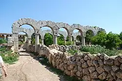 Am östlichen Ortsrand steht nördlich der Straße die Ruine einer einschiffigen Kapelle aus dem 6. Jahrhundert mit rechteckig hervorspringender Apsis an der Ostwand, deren Außenmauern fast vollständig erhalten sind. Die Rundbogenfenster sind durch ein waagrechtes Gesimsband miteinander verbunden, das sich an den Enden zu Voluten aufrollt. Das Gebäude gehörte zu einem Kloster; von einer angrenzenden Basilika und den Wohnquartieren der Mönche blieben nur noch geringe Reste. Die Ostbasilika aus dem 5. oder 6. Jahrhundert besaß eine hufeisenförmige Apsis. Es gab noch eine einschiffige Kirche aus dem 6. Jahrhundert.