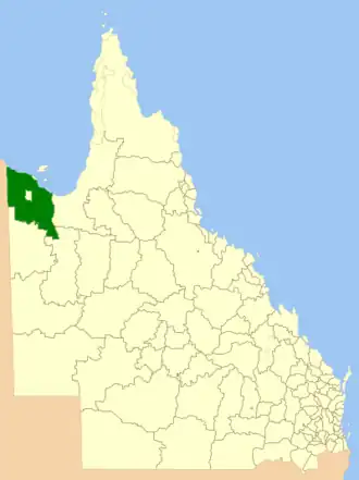 Das Shire liegt im Nordosten des Staats an der Grenze zum Northern Territory und am Golf von Carpentaria etwa 1.750 km nordwestlich der Hauptstadt Brisbane und etwa 890 km nordöstlich von Alice Springs.