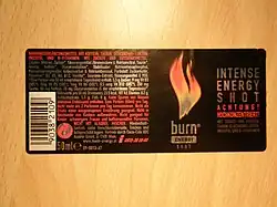 Laut Information der Österreichischen Agentur für Gesundheit und Ernährungssicherheit (AGES)[3] handelt es sich bei den sogenannten Energy shots nicht um Energydrinks im herkömmlichen Sinne, sondern um Nahrungsergänzungsmittel. Auf den Labels der burn Energy Shots ist in Österreich folgender Sicherheitshinweis abgedruckt, der aufgrund der Nahrungsergänzungsmittelverordnung verpflichtend ist:
