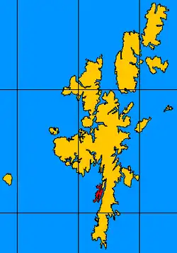 Der Name Burra, früher auch Burray, steht auch für eine ehemalige Civil parish der schottischen Shetlandinseln. Diese wurde 1891 mit zwei weiteren Civil parishes (Quarff und Culberwick) in die Civil parish Lerwick (Hauptstadt der Shetlandinseln) eingegliedert, nachdem sie zwischenzeitlich zur Civil parish Bressay, Burra, and Quarff gehört hatte.[1] Burra steht außerdem für eine bestehende Quoad sacra parish der Church of Scotland. Dieses Gebiet umfasste bzw. umfasst neben den beiden genannten Hauptinseln West Burra und East Burra noch einige kleinere, aktuell unbewohnte Inseln wie South Havra (0,59 km²) und Little Havra (0,12 km²[2]) im Süden und Papa (mit West Head of Papa, 0,60 km²) im Norden[2]. Zusammen mit Trondra, das zur Civil parish Tingwall gehört, bildet Burra die Community council area Burra and Trondra. Die genannten Inseln und weitere Inseln gehören zur Gruppe der Scalloway Islands im südwestlichen Bereich der Shetlandinseln.