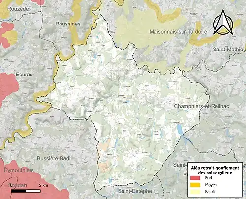 Von Bodensetzungen wird Busserolles nur mittelmäßig entlang der Tardoire betroffen.