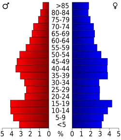 26,9 Prozent der Bevölkerung waren unter 18 Jahre alt, 8,6 Prozent zwischen 18 und 24, 25,1 Prozent zwischen 25 und 44, 23,0 Prozent zwischen 45 und 64 und 16,4 Prozent waren 65 Jahre oder älter. Das Durchschnittsalter betrug 38 Jahre. Auf 100 weibliche Personen kamen 88 männliche Personen und auf Frauen im Alter von 18 Jahren und darüber kamen 82,9 Männer.