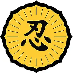Der Rand symbolisiert die Tugenden der Kampfkünste und die Strahlen mit dem orangefarbenen Hintergrund stehen für die aufgehende Sonne. Die Kalligrafie 忍 bedeutet „Geduld“.